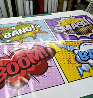 Impresion con tinta UV CMYK + Blanco + Laca transparente. Para stickers ultra resistentes.